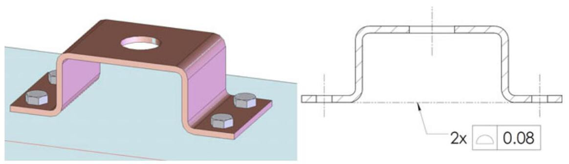 Fig. 10.4 A profile tolerance is very easy to inspect, and the location of the surface, as well as the size, the parallelism and the flatness error are controlled