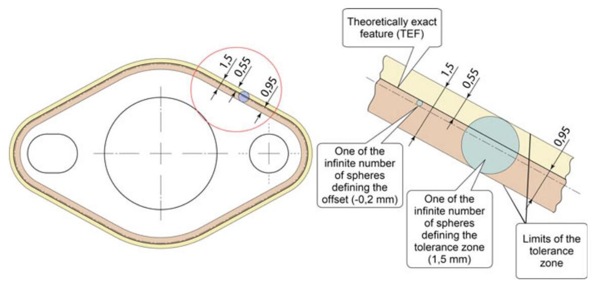 Fig. 10.13 Offset tolerance zone with the specified offset