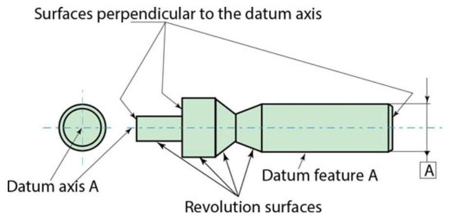 The datum feature in run-out tolerances may be constituted by a single axis, two axes considered to be coincident or an axis plus a plane perpendicular to it.