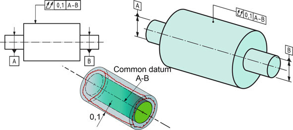 The datum feature in run-out tolerances may be constituted by a single axis, two axes considered to be coincident or an axis plus a plane perpendicular to it.