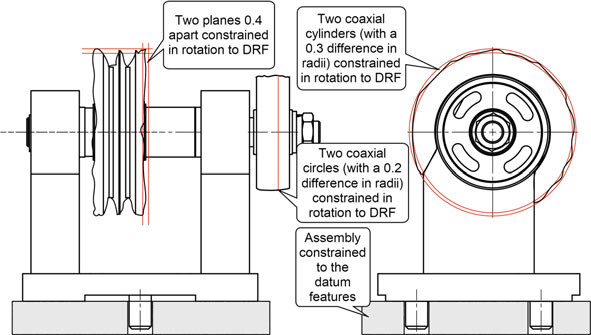 Fig. 11.19 Interpretation of the run-out controls of an assembly