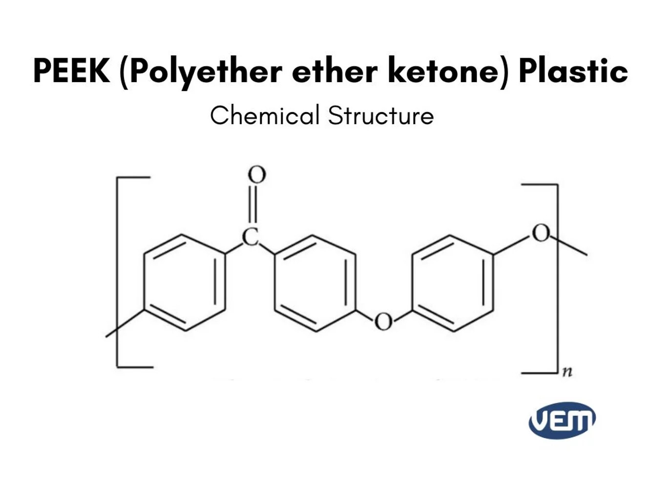 PEEK是一种半结晶型热塑性高性能聚合物,由英国ICI公司(现Victrex前身)于1970年代末开发,1980年代工业化生产。分子主链由苯环、醚键(-O-)和酮基(-C=O-)交替构成,高度芳香族结构赋予它极高的热稳定性和化学惰性。