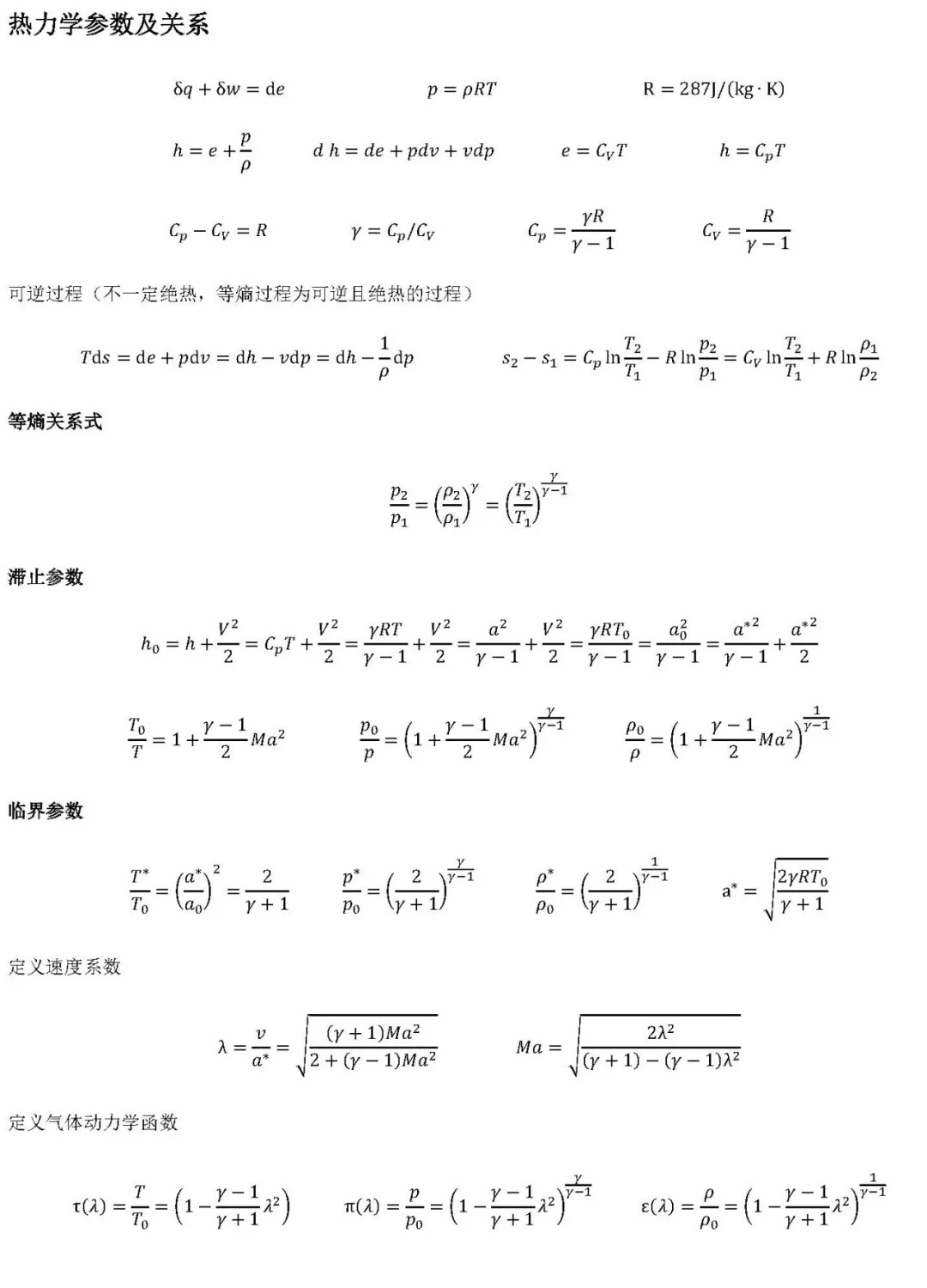 【合集】空气动力学基本公式大全