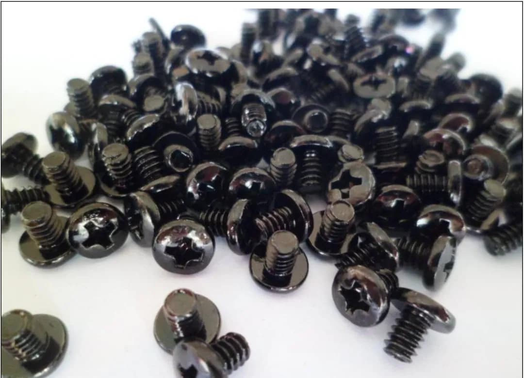 常见黑色螺钉主要用来固定黑色或其它深色电器的底壳或后壳使用,为减少物的管理最多机内也使用黑色的螺钉。其主要有氧化黑、黑镍、黑锌和电泳黑等几种工艺.