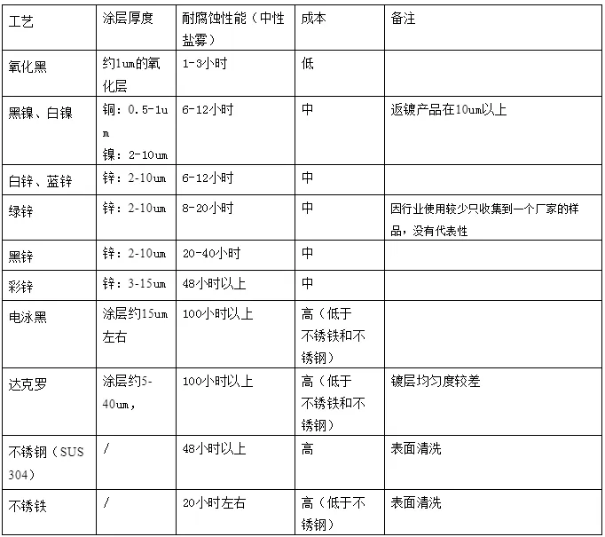 对于其抗腐蚀能力,蓝锌比白锌好一些,而绿锌又比蓝锌好一些。蓝锌的颜色是微蓝与白锌相对比较接近,行业内使用较多,后面也可作为产品设计时的备选工艺的螺丝。