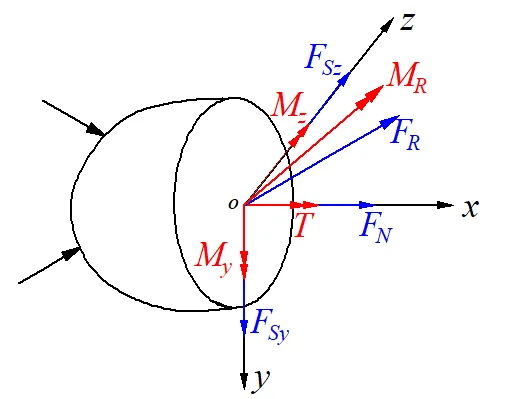 把主矩向三个坐标轴分解可得三个分量:沿着x轴的扭矩,沿着y轴和z轴的弯矩。