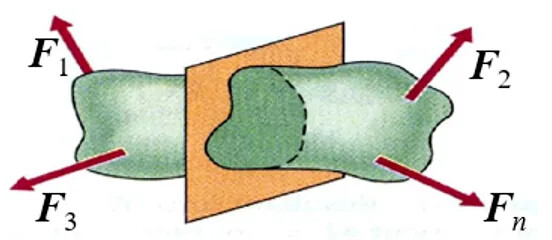 • 假想截开: 在所求内力的截面处(一般是横截面),假想地用截面将杆件一分为二。