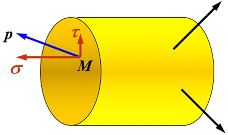 • 全应力分解为: 垂直于截面的应力称为“正应力”,位于截面内的应力称为“切应力”。
