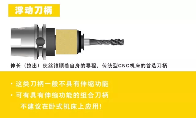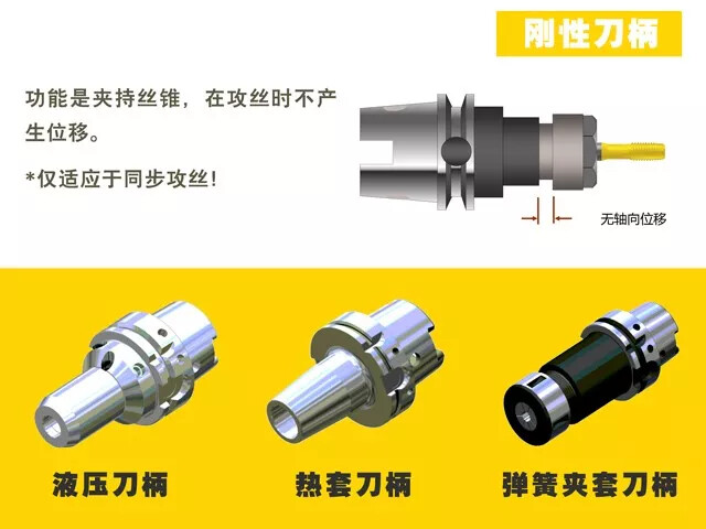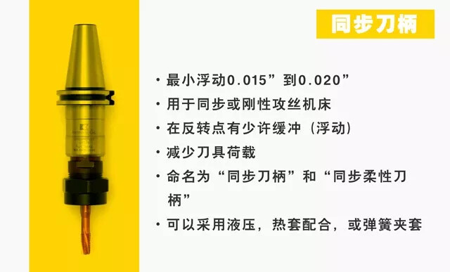 - 刀柄的选择:用于非同步攻螺纹和同步攻螺纹。