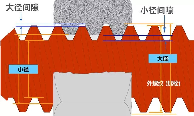 中径最为重要,因为它控制所有螺纹组装的配合与强度。中径在节线上,这一位置的齿宽与相邻齿槽宽度一致。