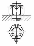 开槽螺母与螺杆带孔螺栓和开口销配合使用,以防止螺栓与螺母相对转动。
