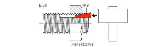 串联钢丝防松是将钢丝穿入螺栓头部的孔内,将各螺栓串联起来,起到相互牵制的作用。这种放松方式非常可靠,但拆卸比较麻烦。
