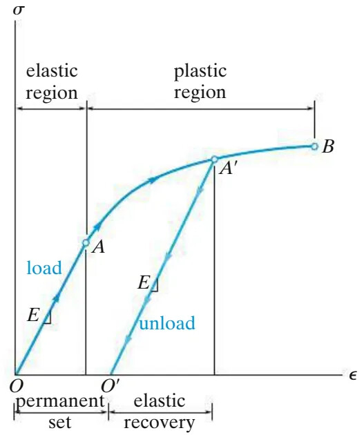 当荷载消失,原子键被破坏导致原子之间产生永久位移,原子键没有被破坏的原子间位移依然可以恢复原状,这就是为什么进入塑性变形的材料随着荷载消除依然会回弹一部分变形同时产生部分永久变形。