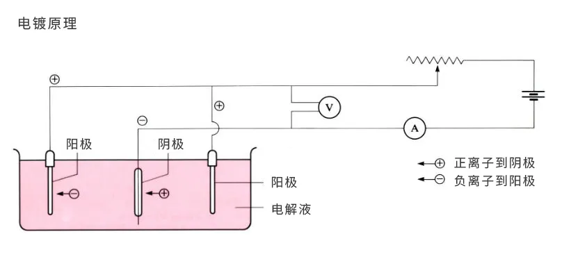 利用电解作用在零件表面附着金属膜,防止氧化并提高耐磨性、导电性、反光性、抗腐蚀性和美观度。