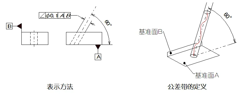 倾斜度公差是被测要素的实际方向,对于基准成任意给定角度的理想方向之间所允许的最大变动量。