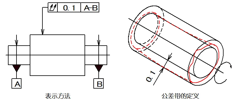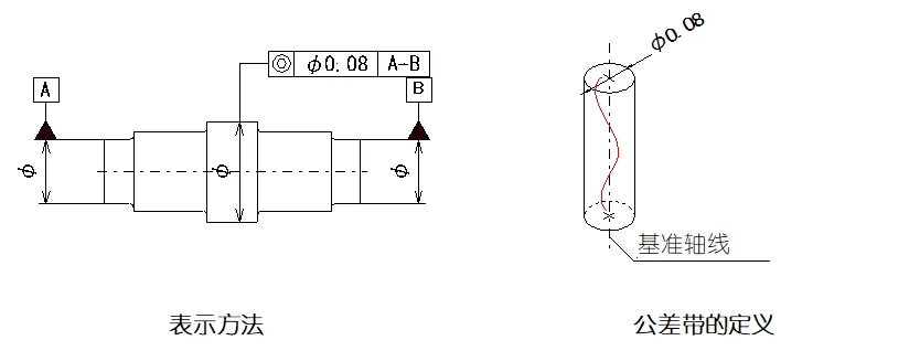 同轴度, 即通常所说的共轴程度,表示零件上被测轴线相对于基准轴线,保持在同一直线上的状况。