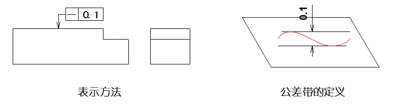在给定平面内,公差带必须在距离为0.1mm的两平行直线间的区域
