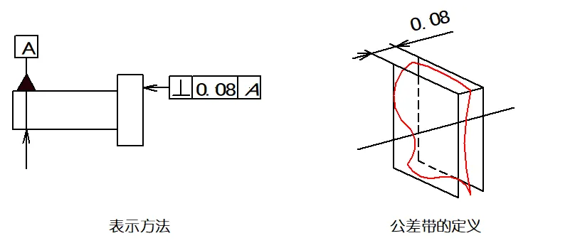 垂直度, 即通常所说的两要素之间保持正交的程度,表示零件上被测要素相对于基准要素,保持正确的90°夹角状况。