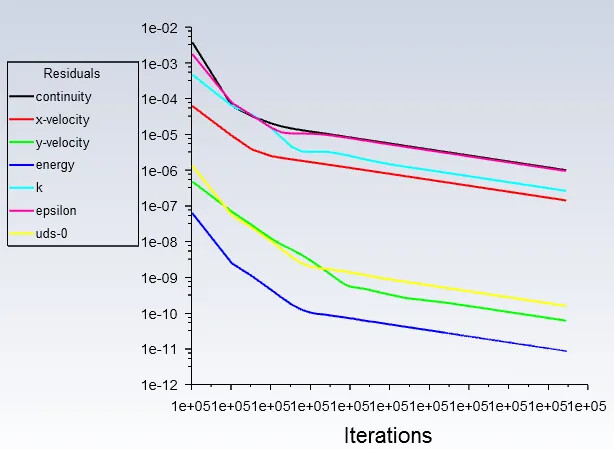 为了使结果更加精确,可根据工况辅助检测一些物理量,如速度,流量等。当所关心的物理量基本不变时,说明达到了收敛。某些情况下即使残差没有达到设定值,只要所检测的物理量很稳定,也可以认为收敛。