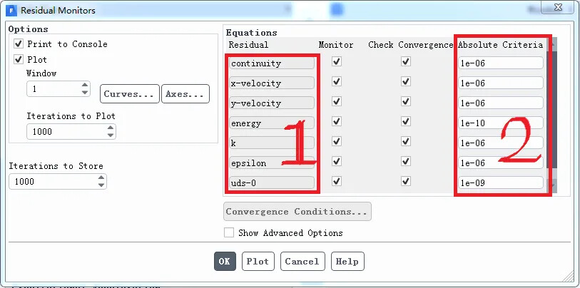 为了使结果更加精确,可根据工况辅助检测一些物理量,如速度,流量等。当所关心的物理量基本不变时,说明达到了收敛。某些情况下即使残差没有达到设定值,只要所检测的物理量很稳定,也可以认为收敛。