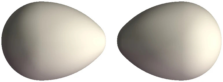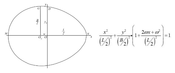 The egg-shaped contour can be drawn based on the general formula of the Höger-Scheffler model, as shown in the figure below. Here, L is the length of the egg, B is the width of the egg, and w is the distance from the widest part to the midpoint of the egg length. By measuring these three parameters of the egg, its geometric shape can be reconstructed.