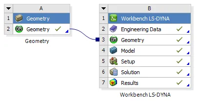 When dealing with transient, large strain, large deformation, collision, and complex contact problems, explicit dynamic solvers can effectively meet the simulation requirements. Click on "Extensions," open the interface, check the appropriate options, and then click "Close." Drag and drop "Workbench LS-DYNA" onto "Geometry" to create a project analysis workflow, as shown in the figure below.