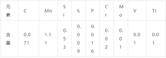 Q345D:C≤0.20,Mn ≤1.7,Si≤0.55,P≤0.030,S≤0.030,V 0.02~0.15,Al≥0.015;