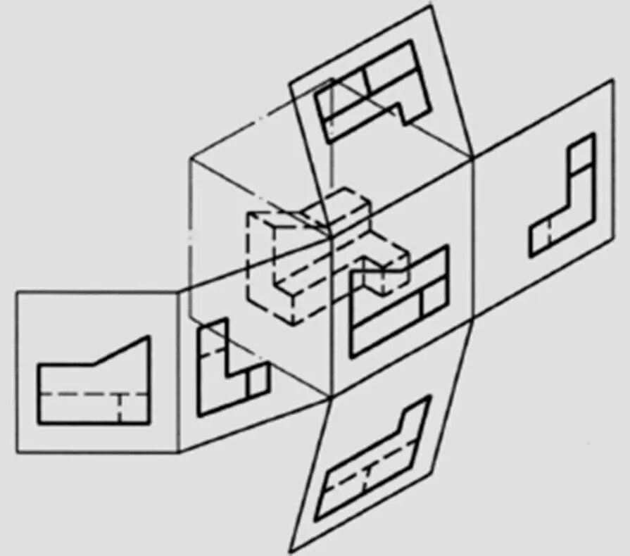 依据投影原理表示物体的形状,可将物体置于任何象限内,一般将物体置于第一限象而得到投影视图的方法称为第一角投影法,因此同理可得第二、三、四角投影法。