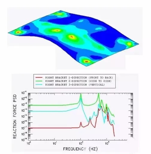 随机响应分析是基于模态的线性摄动过程,预测系统承受随机连续激动下的响应,通过统计学获取功率谱密度函数来表达激励载荷,通过居于统计意义上的有限元输出的均方根响应来描述结构行为。随机响应分析的电影应用如下:1.飞机在踹流下的响应;2.喷气式发动机产生的噪声对结构的响应。此外,随机振动分析还可通过在稳态动力学分析中定义频响函数进行模拟。