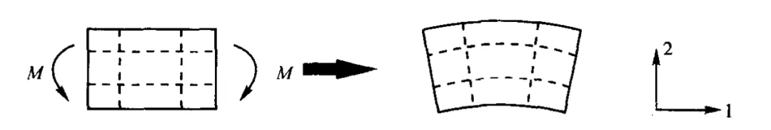 根据材料力学中的平截面假定,纯弯曲时,截面保持平面且垂直于中性轴,理论上无剪切应力。然而,在有限元分析中,低阶线性单元(如四节点四边形Q4)的形函数仅支持线性位移插值,无法准确表达弯曲引起的二次位移场,导致寄生剪切应变,如图1所示。