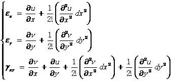 2) 几何非线性:结构的位移或应变较大,一般包括大变形、屈曲分析
