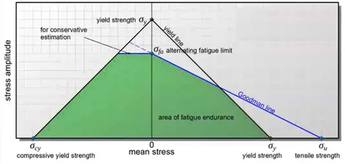 1899 年,Goodman 将 Gerber 的抛物线简化为线性关系,提出更保守的工程公式: