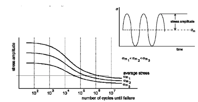 疲劳寿命由应力幅和平均应力共同决定。例如,当应力幅相同时,高拉伸平均应力会导致更短的寿命(见图1)。