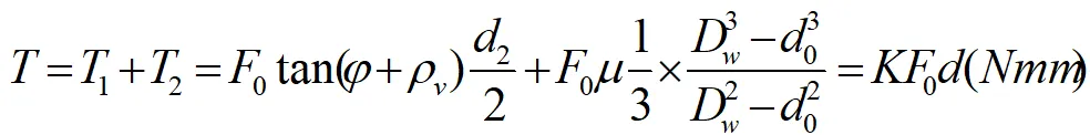 K的取值较为复杂,很难得到其准确值,通常需要通过相关试验进行修正。对于普通粗牙M12-M64螺纹,其拧紧力矩系数K一般在0.1-0.3范围内变动。