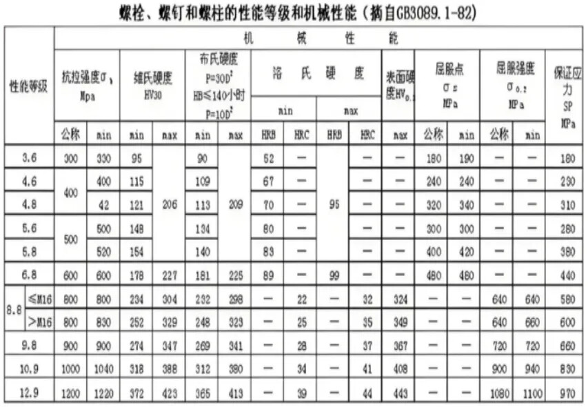 国家标准中规定了螺栓的包括抗拉强度、屈服强度、硬度等性能指标,该标准适用于公称直径为M1.6~M39的螺栓、螺钉和螺柱。