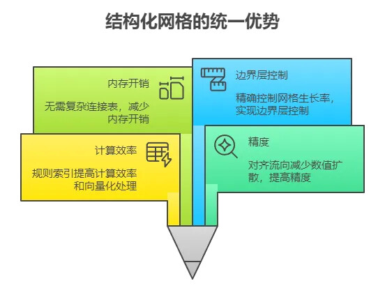 答案是它有着非结构化网格难以比拟的数值优势,结构化网格的主要优点包括: