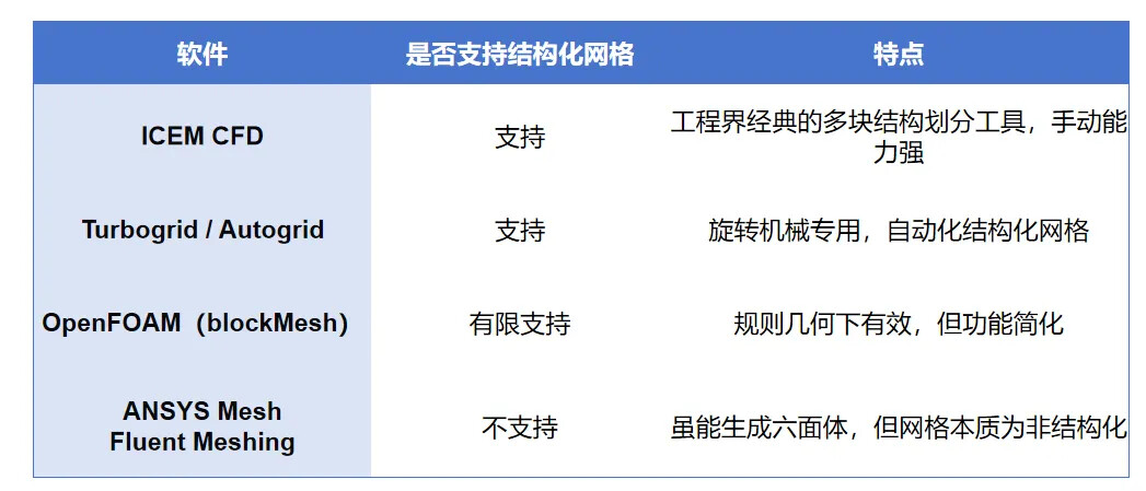 7. 哪些软件能生成真正的结构化网格?