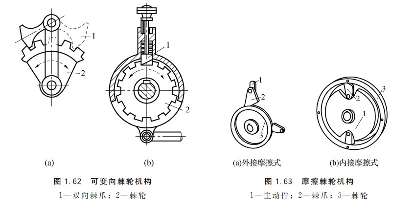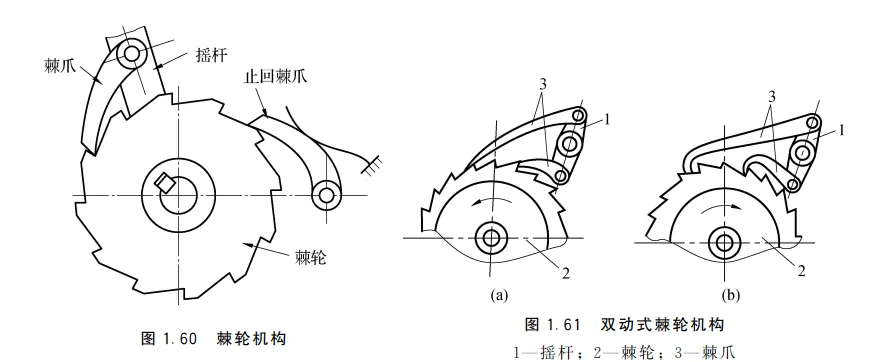 由棘轮、棘爪、和机架组成,棘轮机构分齿式棘轮和摩擦式棘轮。
