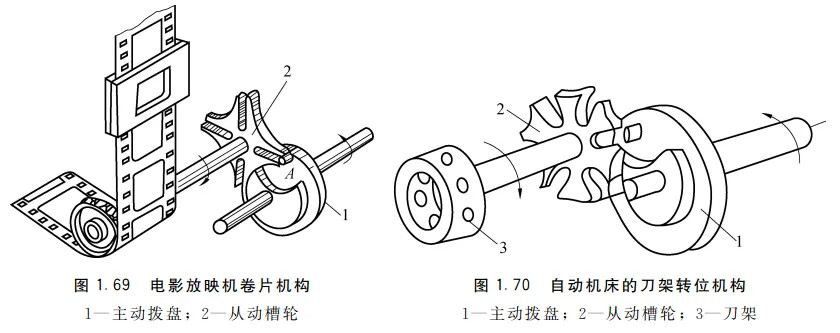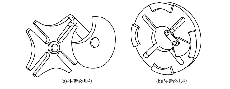 马尔他机构,由具有径向槽的槽轮、带有圆销的拨盘和机架组成。分外槽轮机构和内槽轮机构。