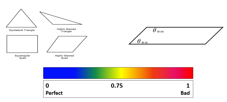- Skewness。 Skewness衡量一个单元的面有多接近理想情况。值的范围从0(理想)到1(退化)。它是通过比较实际单元的大小和理想单元的大小来计算的,理想单元的大小可以与原始单元在相同大小的圆内匹配。