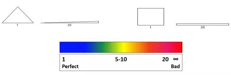 - Aspect ratio。 Aspect ratio是单元的最长边与最短边的比值。理想的单元具有1的长宽比,但是正如前面提到的,一些单元(如六面体)对大的高宽比不太敏感。