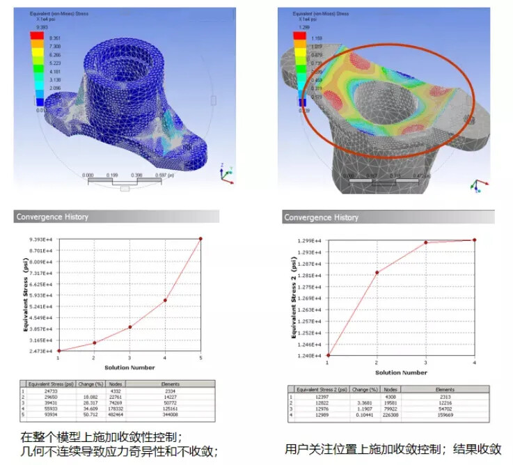 小特征将会如何影响结果? 小孔、圆角、凸角、窄边都将自动生成一个非常精细、局部化的网格。我们需要评估这些特性是否会影响分析:它是否在关键区域?它会影响加载路径吗?这些需要用户在求解精度和时间中做出权衡。