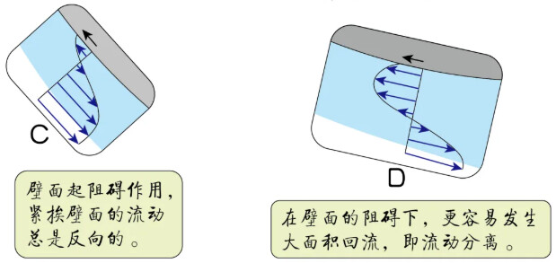 前面的解释迫不得已使用了边界层分离的概念,对于没有学过流体力学的人可能不好理解。不过从字面意思应该大概可以明白就是气流和壁面分离,之后不再沿壁面流动了的意思。