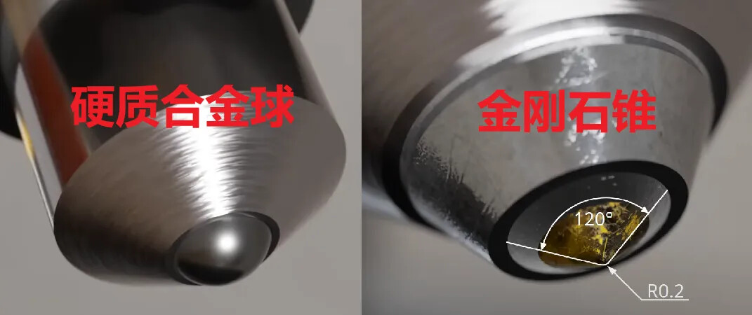 金刚石锥适用于非常坚硬的材料,如淬火钢或回火钢。