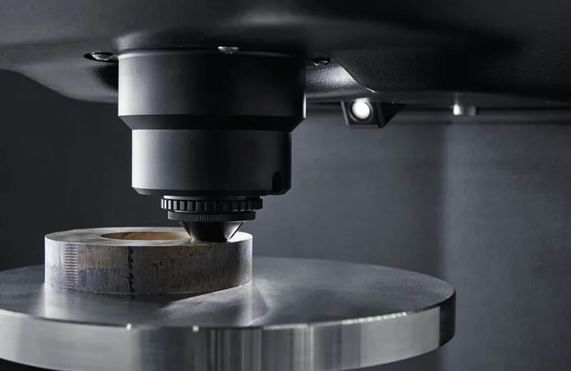 洛氏硬度测试(Rockwell hardness test)是通过施加一定力将压头压入材料中,通过测量压痕深度直接得到材料洛氏硬度值。