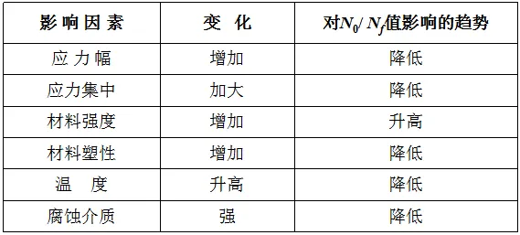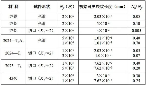 在工程上,通常把试件上产生一条可见的初裂纹的应力循环周次 (N0)或将N0 与试件的总寿命Nf 的比值 (N0/Nf ) 作为表征材料疲劳裂纹萌生孕育期的参量。疲劳裂纹萌生的孕育期与应力幅的大小、试件的形状及应力集中状况、材料性质、温度与介质等因素有关。