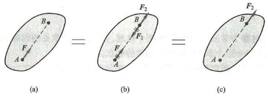 在任一原有力系上加上或减去任意的平衡力系,与原力系对刚体的作用效果等效。