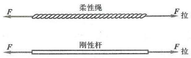 如图 4 所示,绳索在等值、反向、共线的两个拉力作用下处于平衡状态,如将绳索刚化成刚体,其平衡状态保持不变。反之就不一定成立,如刚体在两个等值反向的压力作用下平衡,若将它换成绳索就不能平衡了。