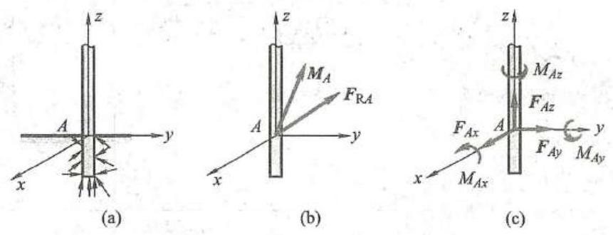 力系中各力的作用线不处于同一平面内时, 这样的力系称为空间力系。与平面力系一样, 空间力系可以分为空间汇交力系、空间力偶系、空间平行力系和空间任意力系。