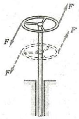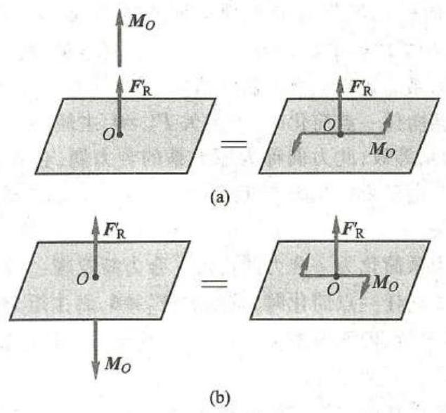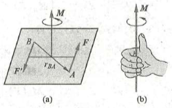 静力学方向可用右手螺旋法则确定:四指的指向与力的方向相同,转轴位于两个力之间, 将转轴握在掌心,大拇指的指向即为力偶矩矢的方向。如图 9b 所示。